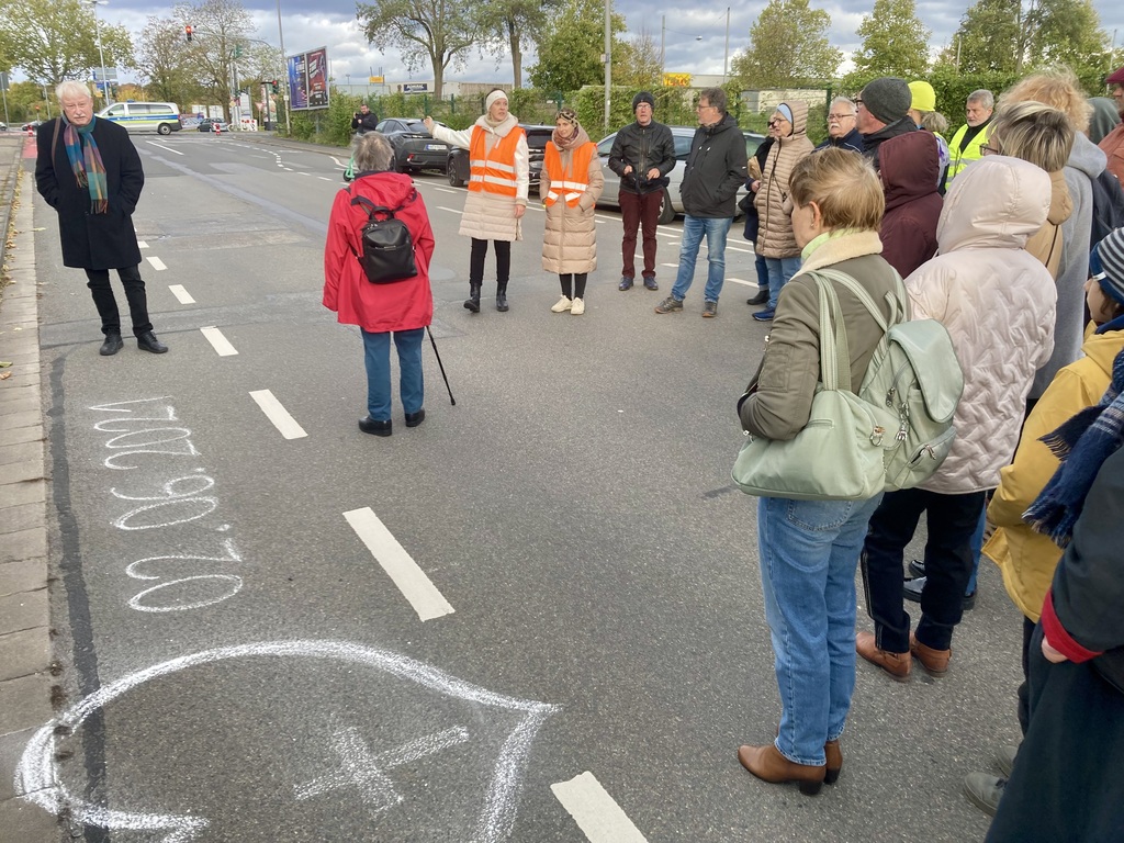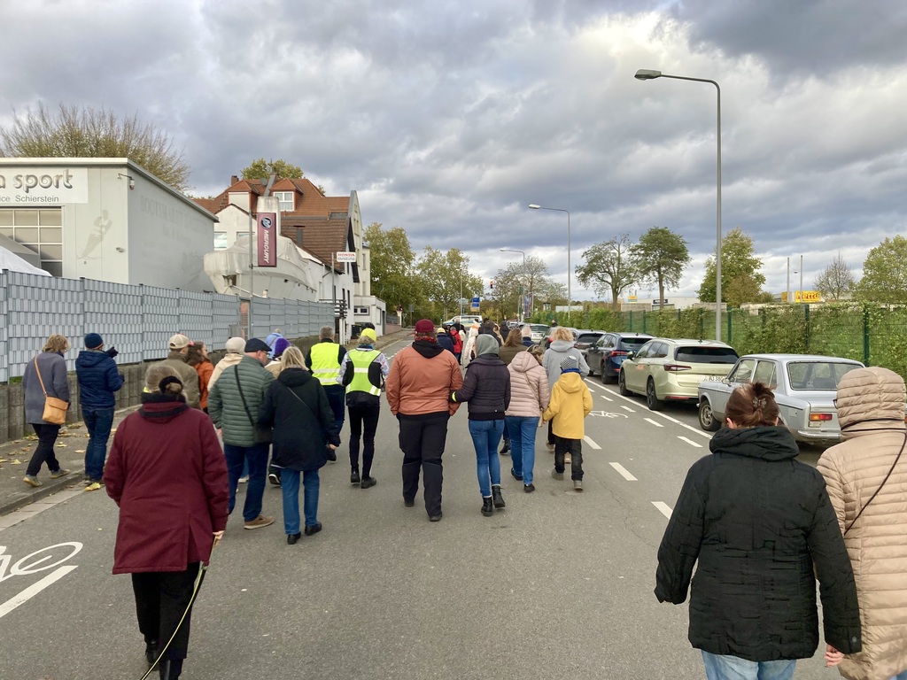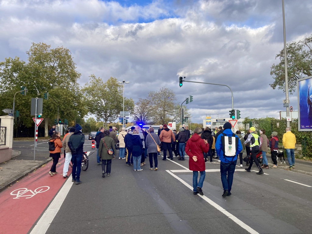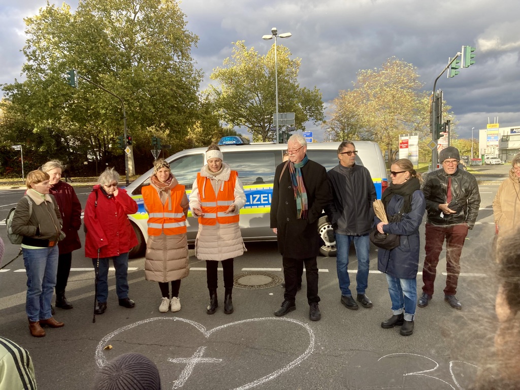 Tödliche Verkehrsunfälle sorgen unmittelbar für Anteilnahme. Das zeigte die durch den ADFC organisierte Fahrraddemonstration eine Woche nach dem Unfall am 29. September 2025 an der Kreuzung Rheingaustraße/Äppelallee/Hafenweg, bei dem eine 50jährige Radfahrerin starb. Aber auch einen Monat später ist die Betroffenheit in Schierstein noch groß. Darum versammelten sich am 26. Oktober 2025 vor allem Menschen aus Schierstein zu einer von zwei ortsansässigen Bürgerinnen organisierten Mahnwache am Osthafen.